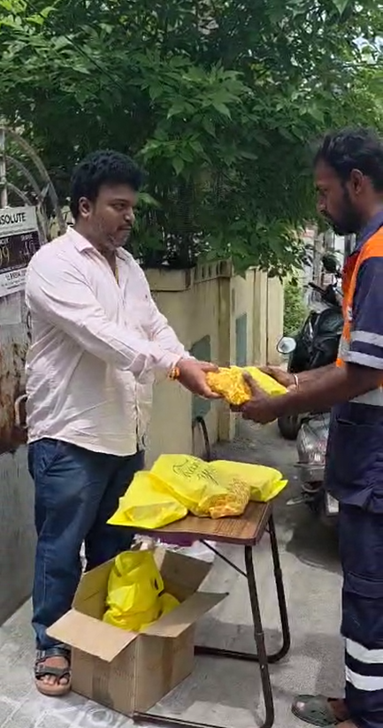 Around 15 hardworking sanitation workers from Aadhambakkam were invited and respectfully felicitated.