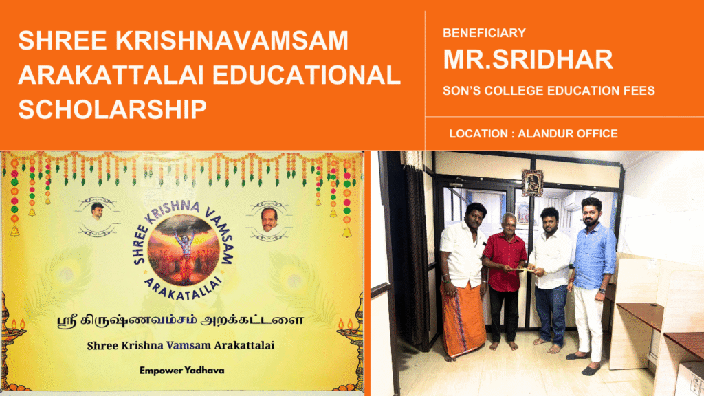 Shree Krishnavamsam Arakattalai Extends Educational Scholarship Support to Mr. Sridhar’s Son